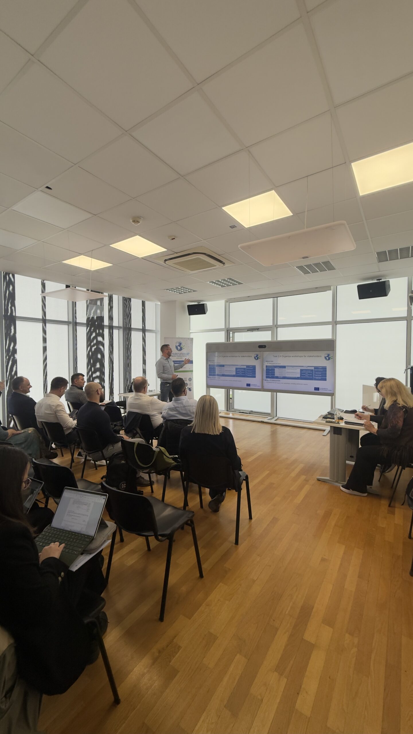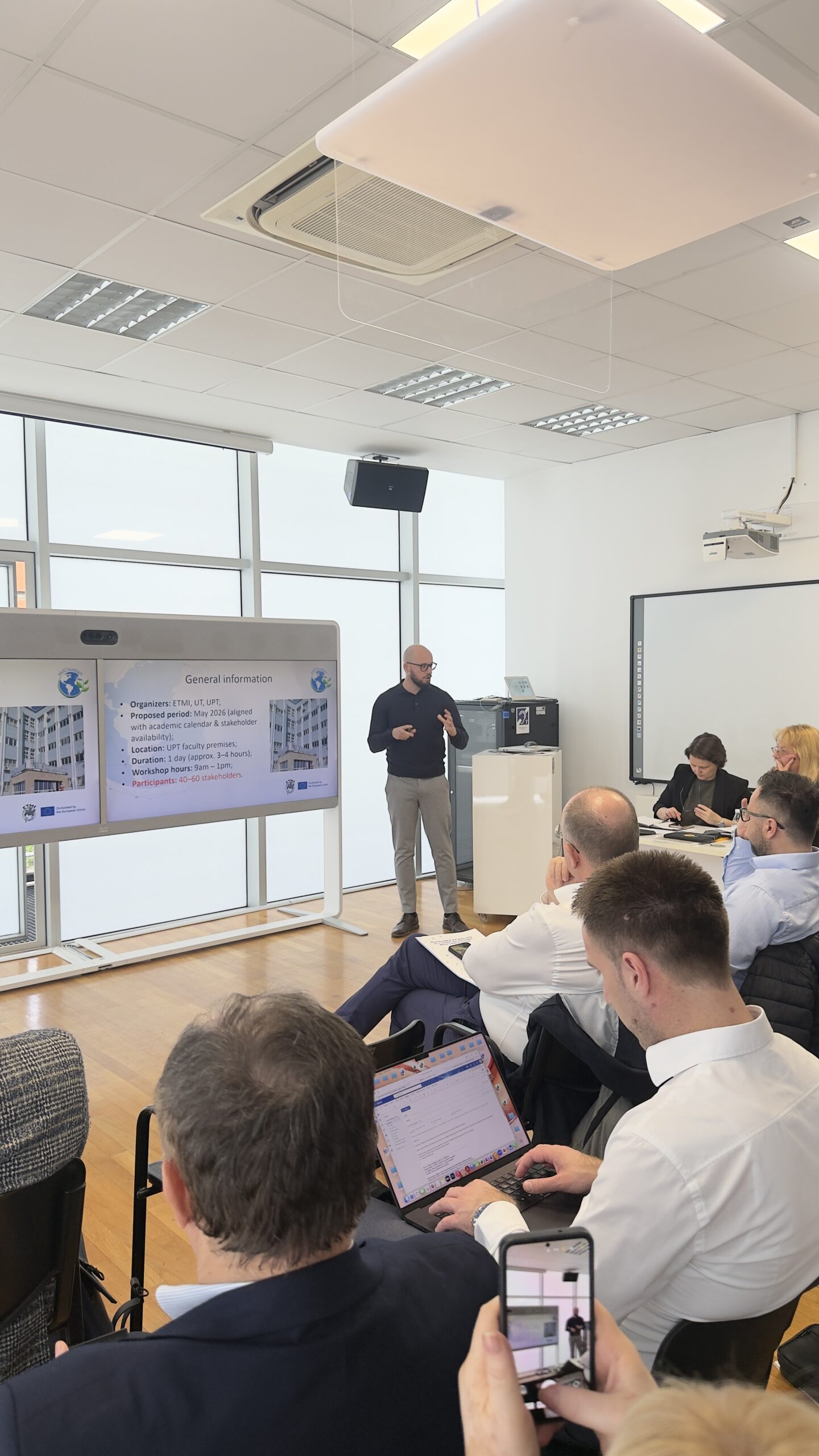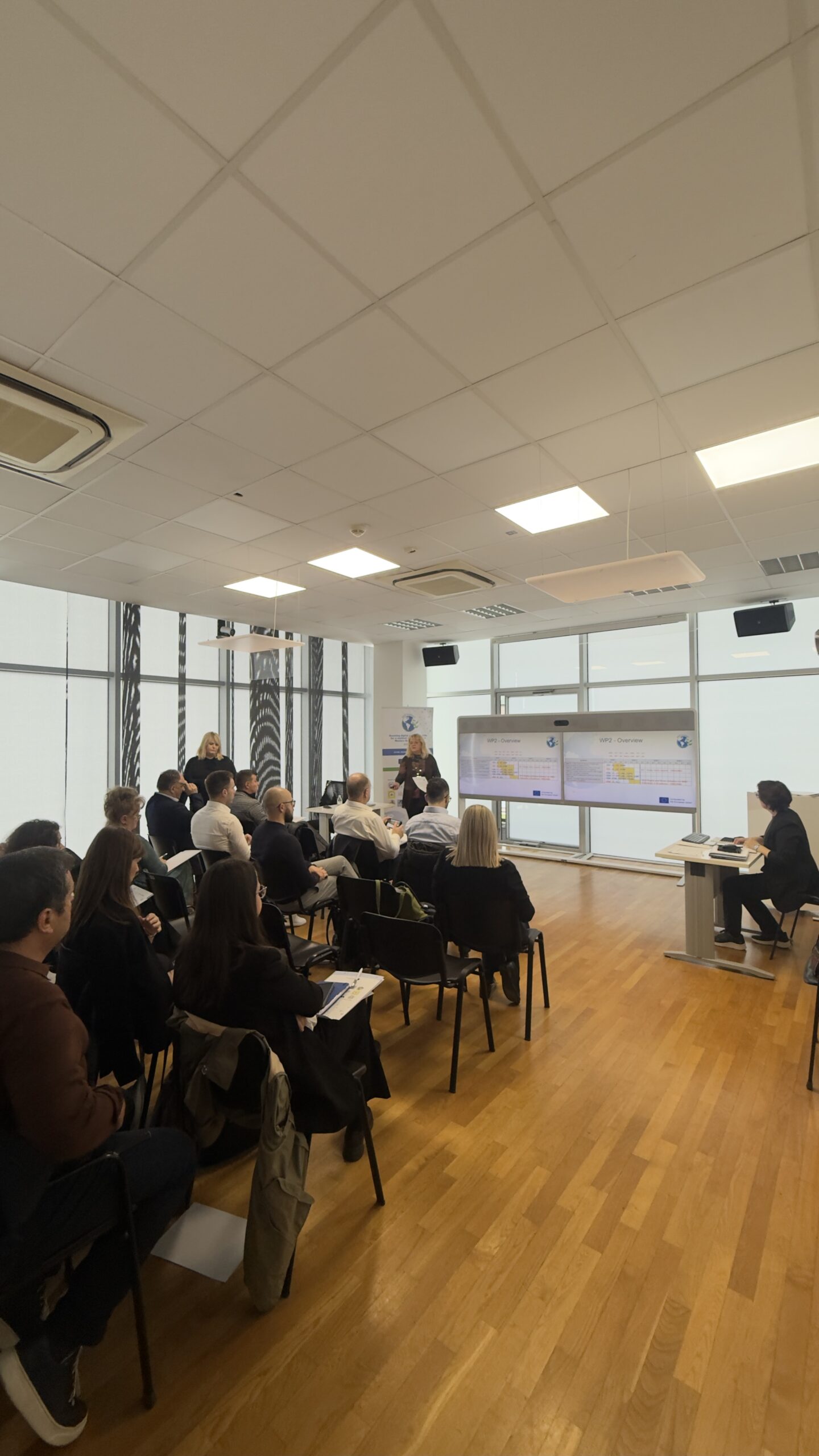 The three-day event combined project coordination with a rich program of academic and research exchange. The first two days were dedicated to the Project Management Meeting, held in the Rectorate Building. Partners reviewed progress across key work packages, including needs assessment for digital and green education in WBC academia (WP2), the establishment of Research and Education Centers (WP3), knowledge transfer activities and curriculum development (WP4), and dissemination and exploitation efforts (WP7). A dedicated Dissemination Reporting Workshop and a Financial Reporting Workshop were also held to support partners in meeting project obligations.